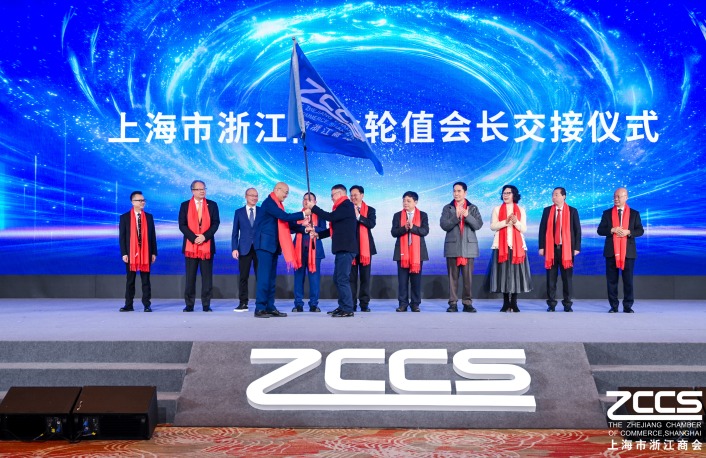 会上,轮值会长交接仪式举行,泰格医药董事长叶小平出任上海市浙江商会2026年度轮值会长。